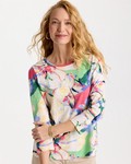 Printed Cotton Slub 3/4 Sleeve Button Tee